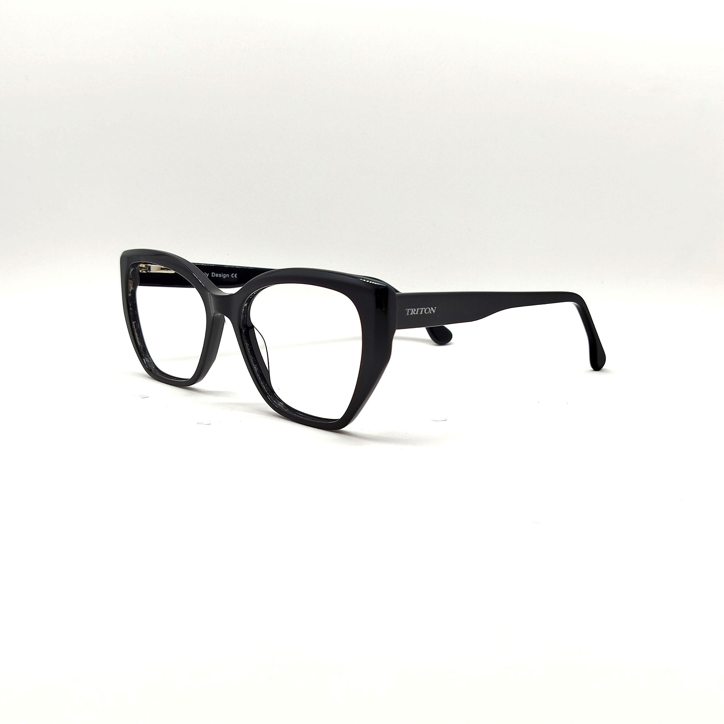 Óculos de grau Triton, formato gatinho na cor preta. Armação em acetato, material leve e resistente, proporcionando maior conforto ao usar. As plaquetas são embutidas, deixando o visual moderno.