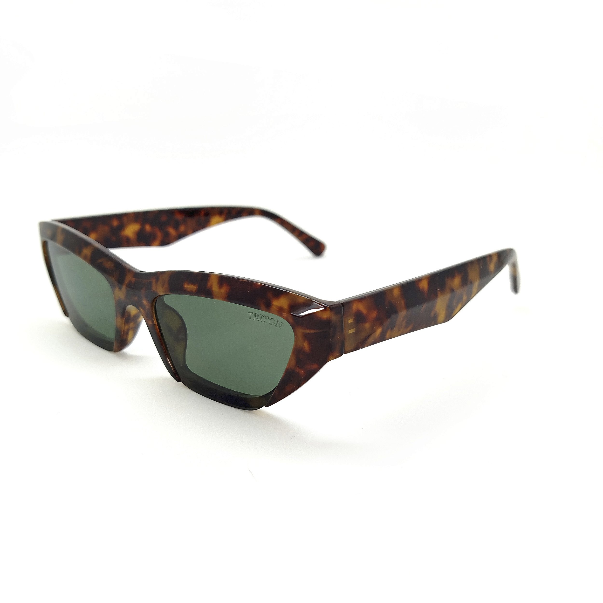 Óculos de sol Triton estilo clássico, formato retrô na cor marrom tartaruga. Armação em acetato e lentes na cor verde. As plaquetas são embutidas. Lentes possuem proteção 100% UVA e UVB, protegendo seus olhos contra os raios nocivos do sol e prevenindo o risco de doenças oculares.