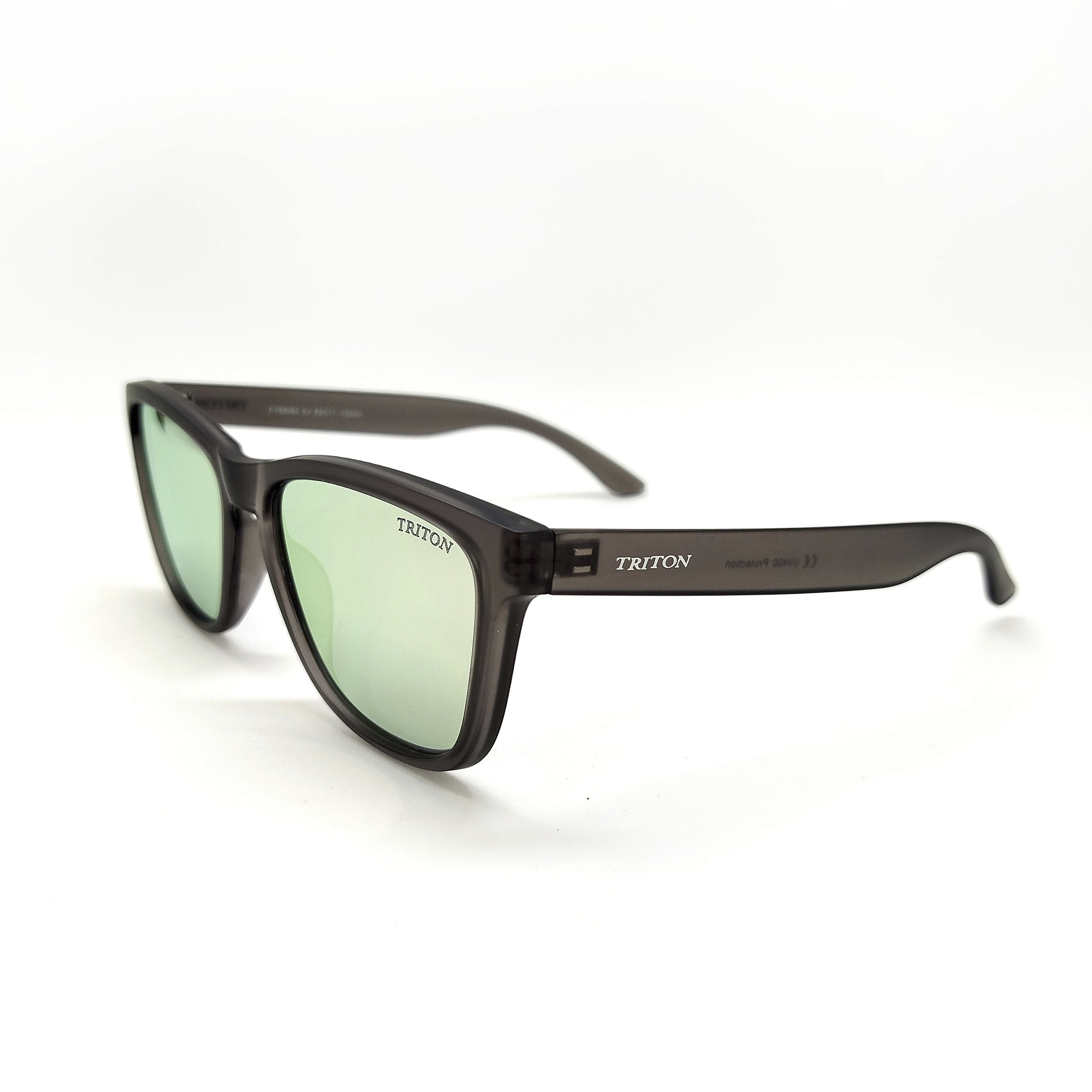 Óculos de sol Triton estilo clássico, formato quadrado na cor cinza. Armação em acetato e lentes na cor espelhada. As plaquetas são embutidas. As lentes possuem proteção 100% UVA e UVB, protegendo seus olhos contra os raios nocivos do sol e prevenindo o risco de doenças oculares.