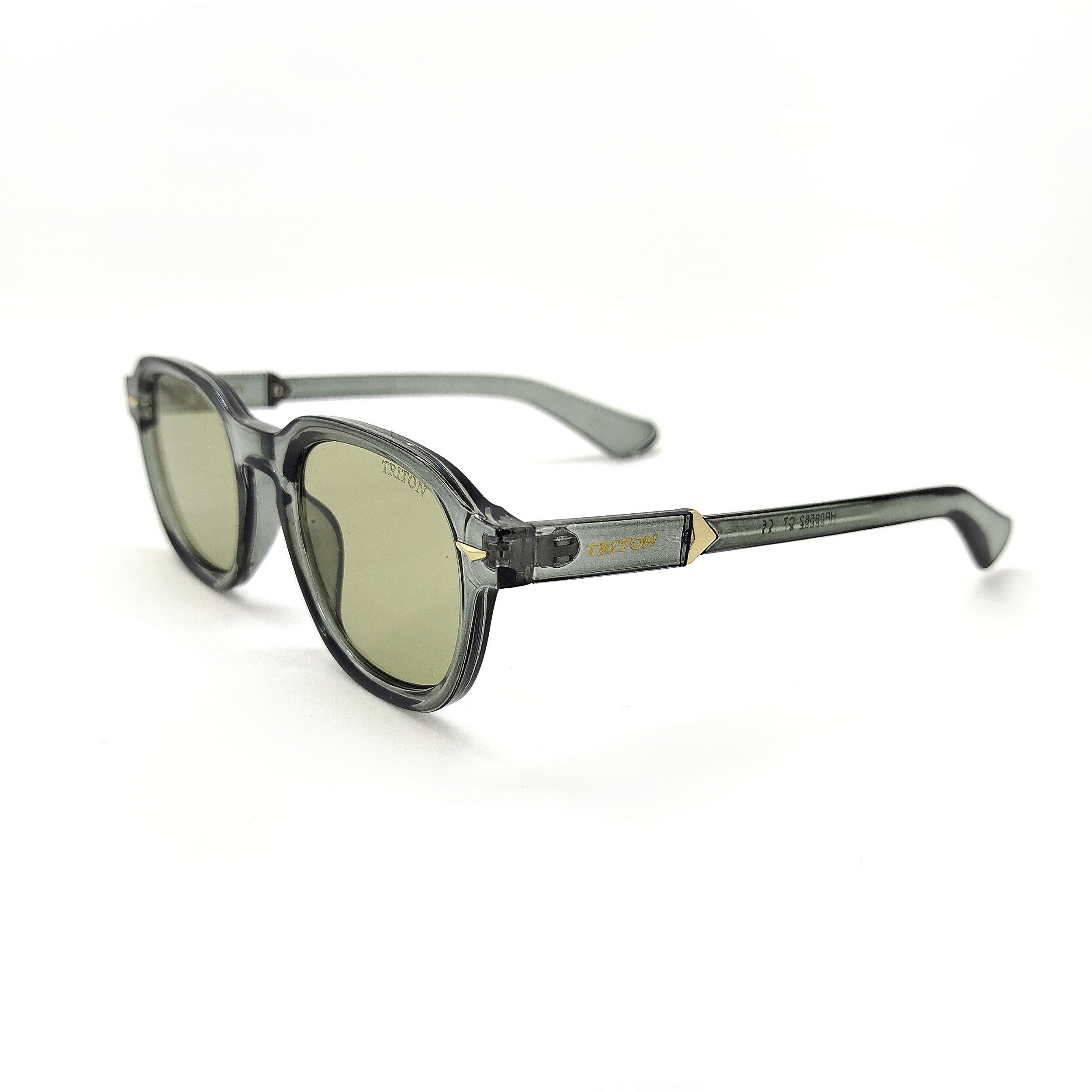 Óculos de sol Triton estilo clássico, formato quadrado na cor cinza. Armação em acetato e lentes na cor verde. As plaquetas são embutidas. As lentes possuem proteção 100% UVA e UVB, protegendo seus olhos contra os raios nocivos do sol e prevenindo o risco de doenças oculares.