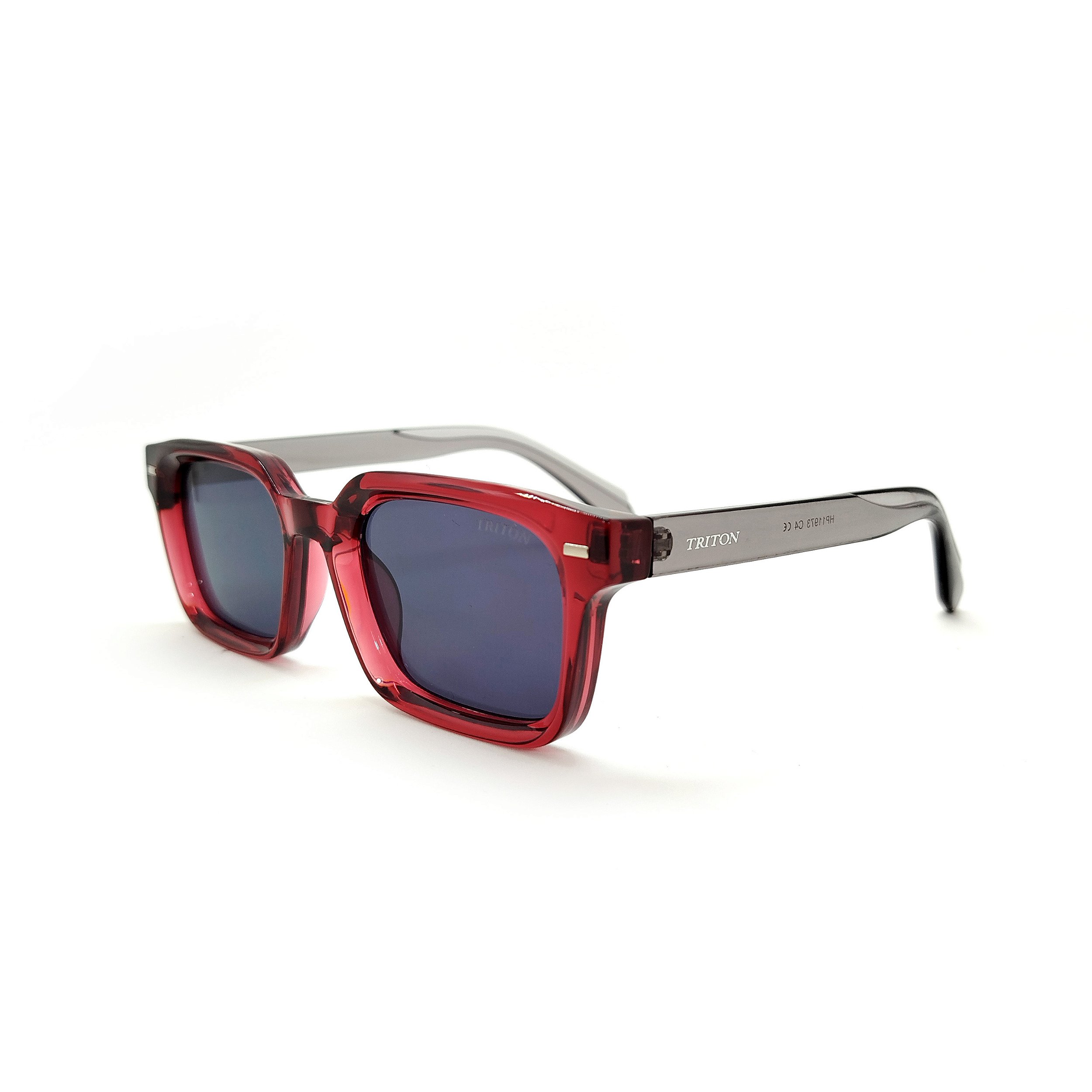 Óculos de sol Triton estilo clássico, formato quadrado na cor vermelha. Armação em acetato e lentes na cor preta. As plaquetas são embutidas. As lentes possuem proteção 100% UVA e UVB, protegendo seus olhos contra os raios nocivos do sol e prevenindo o risco de doenças oculares.