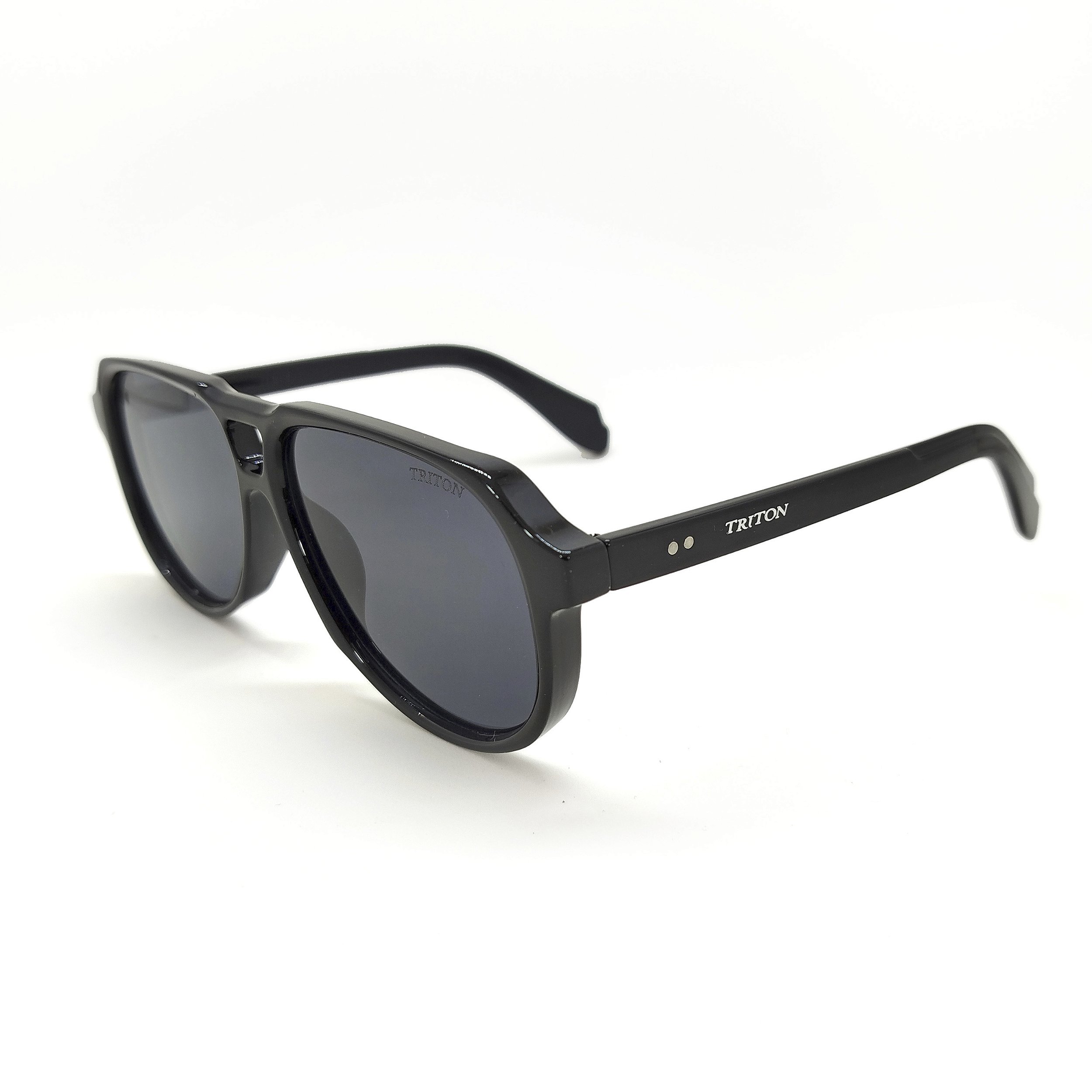 Óculos de sol Triton estilo clássico, formato aviador na cor preta. Armação em acetato e lentes na cor preta. As plaquetas são embutidas. As lentes possuem proteção 100% UVA e UVB, protegendo seus olhos contra os raios nocivos do sol e prevenindo o risco de doenças oculares.