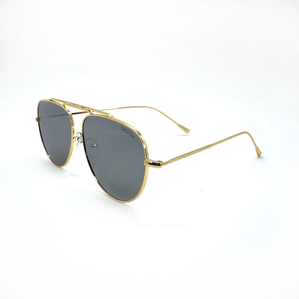 Óculos de sol Triton estilo clássico, formato aviador na cor dourada. Armação em metal e lentes na cor espelhada. As plaquetas em silicone flexíveis podem se ajustar manualmente a diferentes tamanhos e formatos de nariz. As lentes possuem proteção 100% UVA e UVB, protegendo seus olhos contra os raios nocivos do sol e prevenindo o risco de doenças oculares.