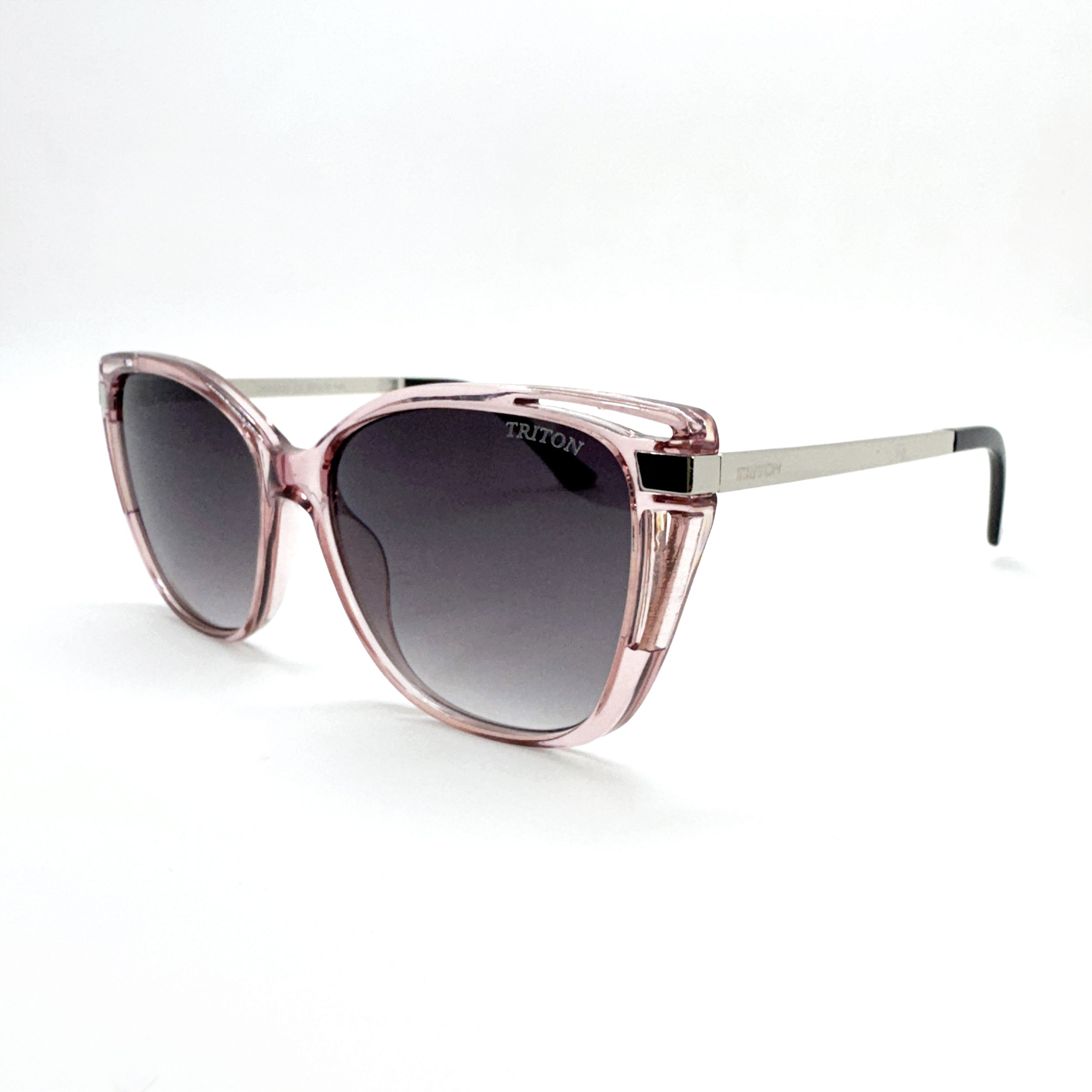 Óculos de sol Triton estilo clássico, formato gatinho na cor rosa. Armação em acetato e lentes na cor preta. As plaquetas são embutidas. As lentes possuem proteção 100% UVA e UVB, protegendo seus olhos contra os raios nocivos do sol e prevenindo o risco de doenças oculares.