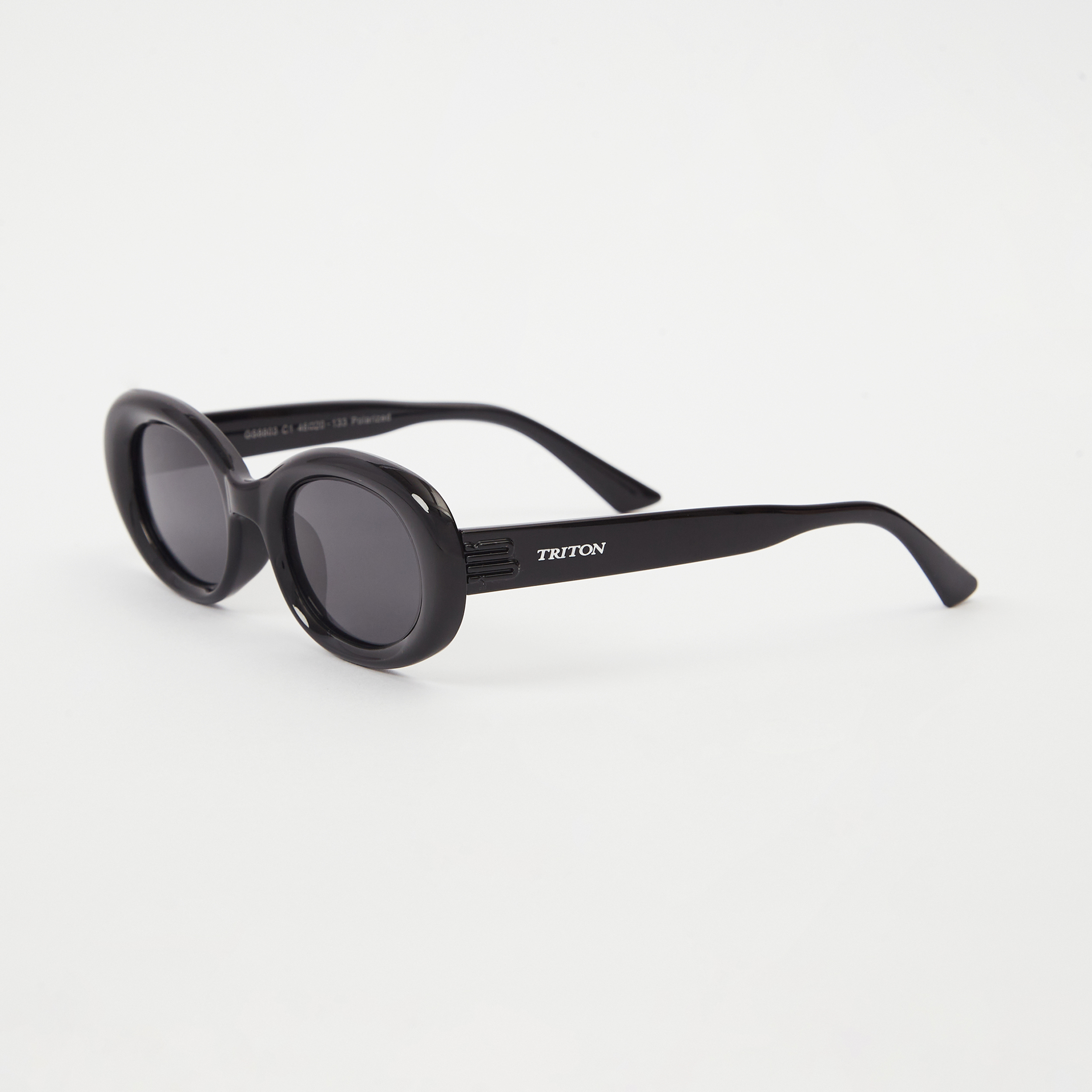 Óculos de sol Infantil Triton, formato oval na cor preta. Armação em acetato e lentes na cor preta. As plaquetas são embutidas. As lentes possuem proteção 100% UVA e UVB, protegendo seus olhos contra os raios nocivos do sol e prevenindo o risco de doenças oculares.