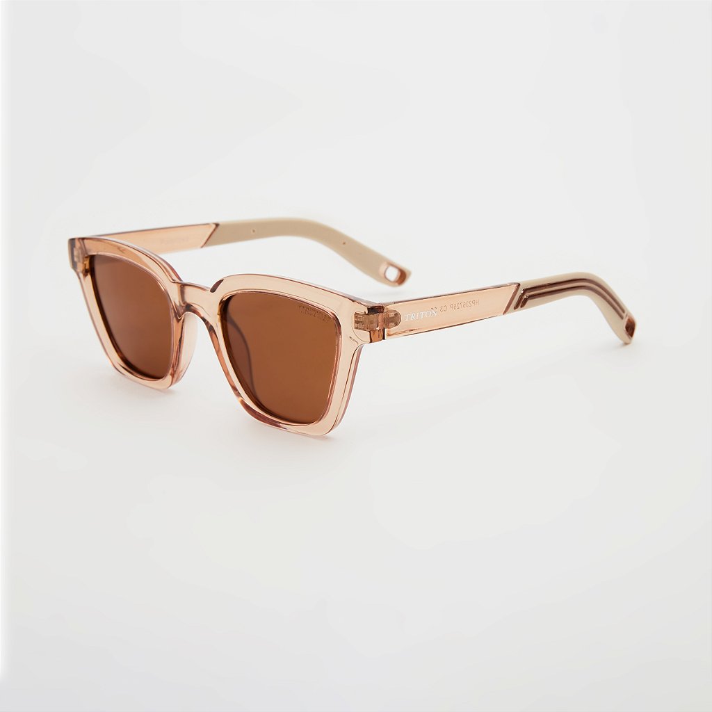 Óculos de sol Triton estilo clássico, formato quadrado na cor nude. Armação em acetato e lentes na cor marrom. As plaquetas são embutidas. Lentes possuem proteção 100% UVA e UVB, protegendo seus olhos contra os raios nocivos do sol e prevenindo o risco de doenças oculares.