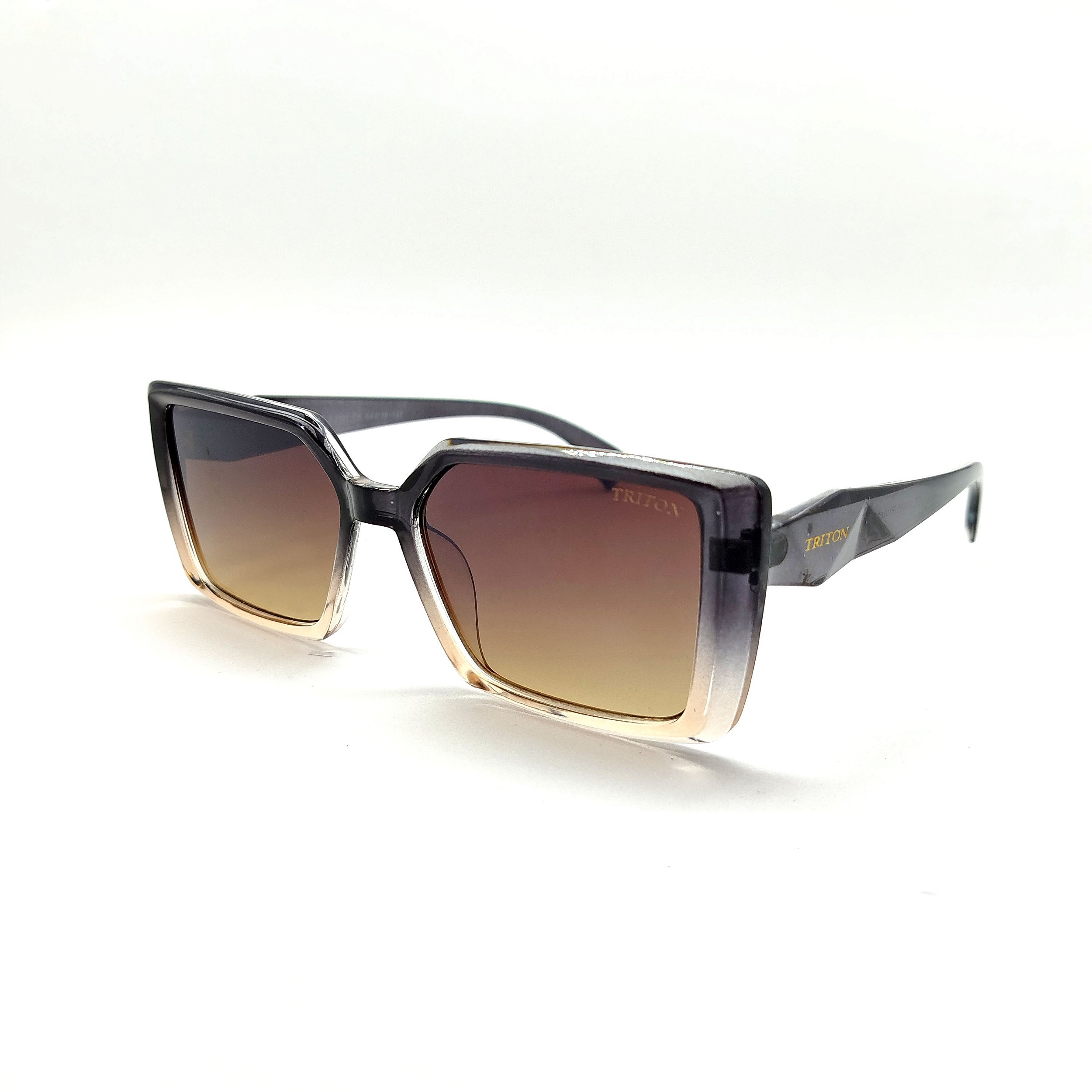 Óculos de sol Triton estilo clássico, formato quadrado na cor cinza e bege. Armação em acetato e lentes na cor marrom. As plaquetas são embutidas. As lentes possuem proteção 100% UVA e UVB, protegendo seus olhos contra os raios nocivos do sol e prevenindo o risco de doenças oculares.