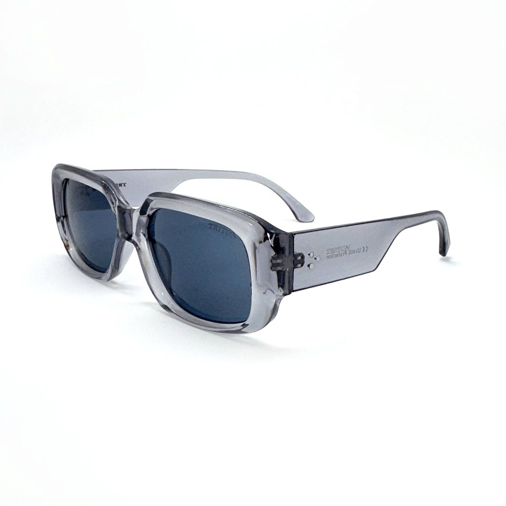 Óculos de sol Triton estilo clássico, formato quadrado na cor cinza. Armação em acetato e lentes na cor azul. As plaquetas são embutidas. As lentes possuem proteção 100% UVA e UVB, protegendo seus olhos contra os raios nocivos do sol e prevenindo o risco de doenças oculares.