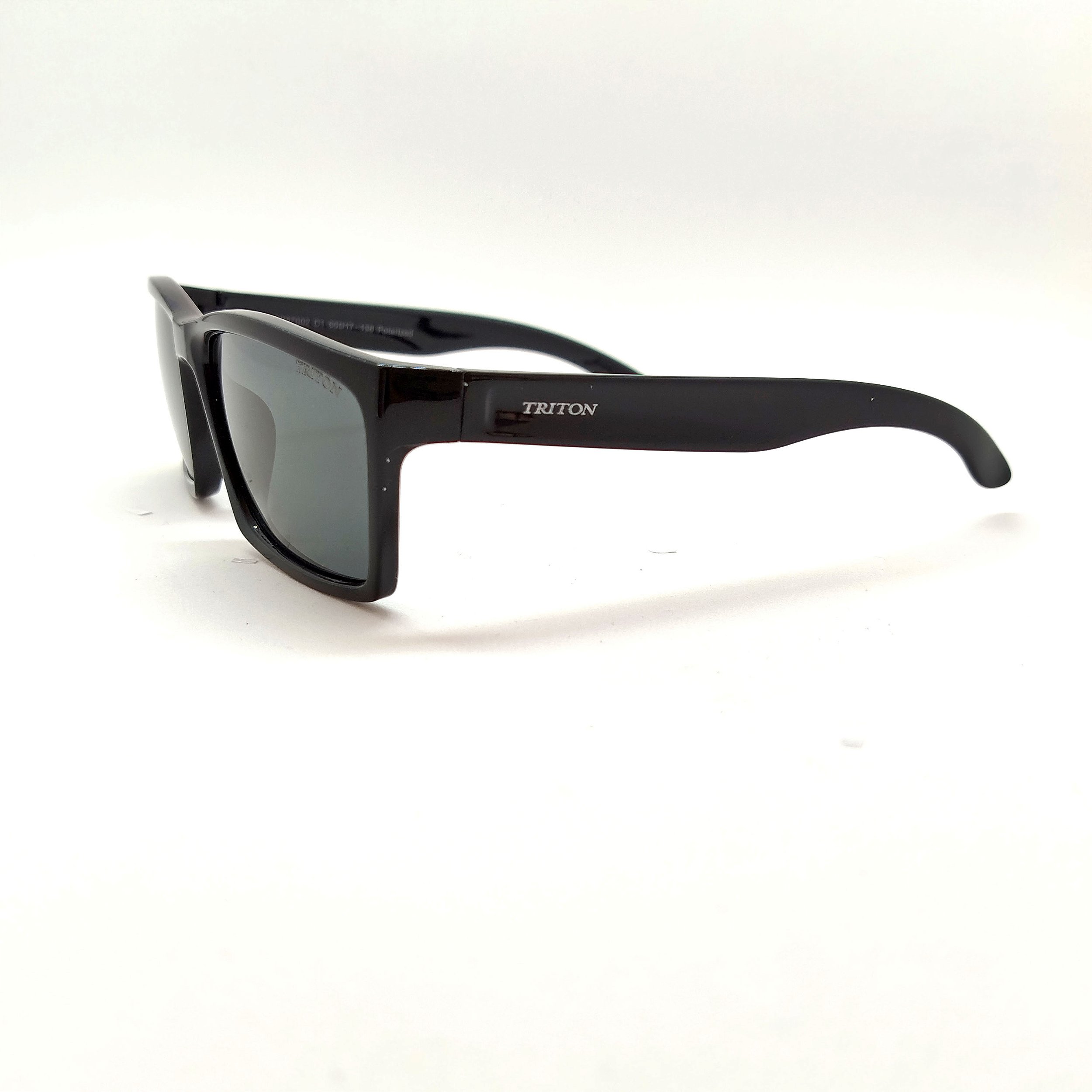 Óculos de sol Triton estilo clássico, formato quadrado na cor preta brilhante. Armação em nylon e lentes na cor preta. As plaquetas são embutidas. Lentes possuem proteção 100% UVA e UVB, protegendo seus olhos contra os raios nocivos do sol e prevenindo o risco de doenças oculares.